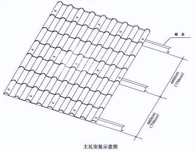 主瓦是屋頂覆蓋材料的核心,因此它的安裝非常關(guān)鍵。在兩坡屋面的情況下,主瓦的安裝需要特別小心。首先,確保一側(cè)波峰的中心與參考線(通常是CC1或DD1線)重合。主瓦的上部和下部都應(yīng)與參考線平行,并從一側(cè)開始逐行安裝。第一張瓦片的安裝尤為重要,要確保瓦底邊垂直不傾斜,位置擺正后,將其固定在最下端的檁條上。為了防止單向搭接造成的傾斜和不平整,主瓦橫向安裝時(shí)要一上一下排列,即第二張瓦片扣壓第一張和第三張瓦片,以此類推。在安裝過程中要不斷檢查瓦底邊與施工線的垂直度,確保無誤后再將固定件安裝齊全。